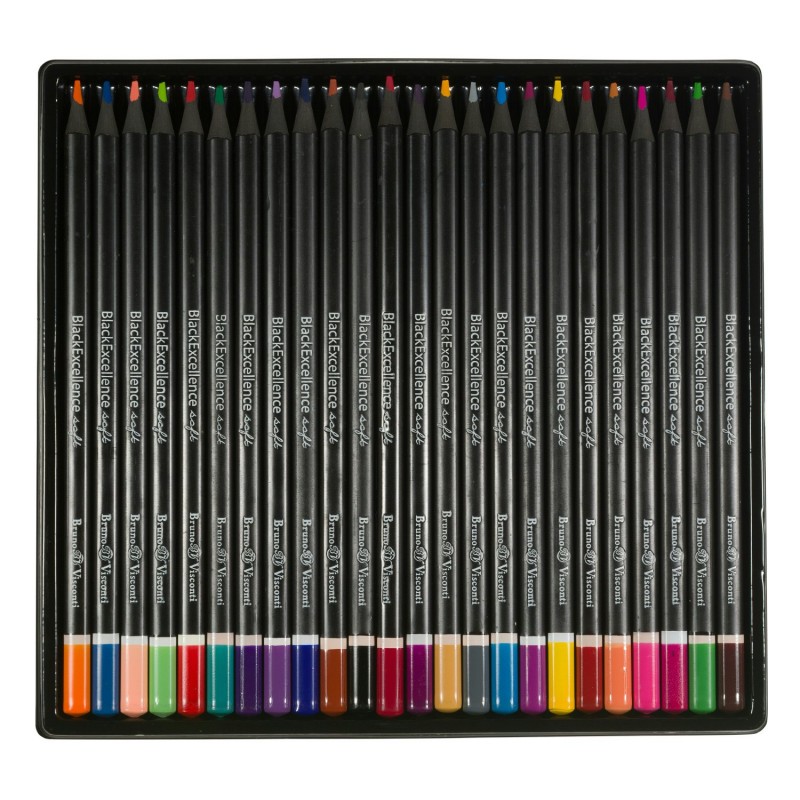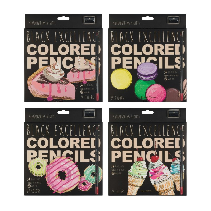 Карандаши 24цв. пластик "BLACK EXCELLENCE" С ТОЧИЛКОЙ, 4 ВИДА Bruno Visconti