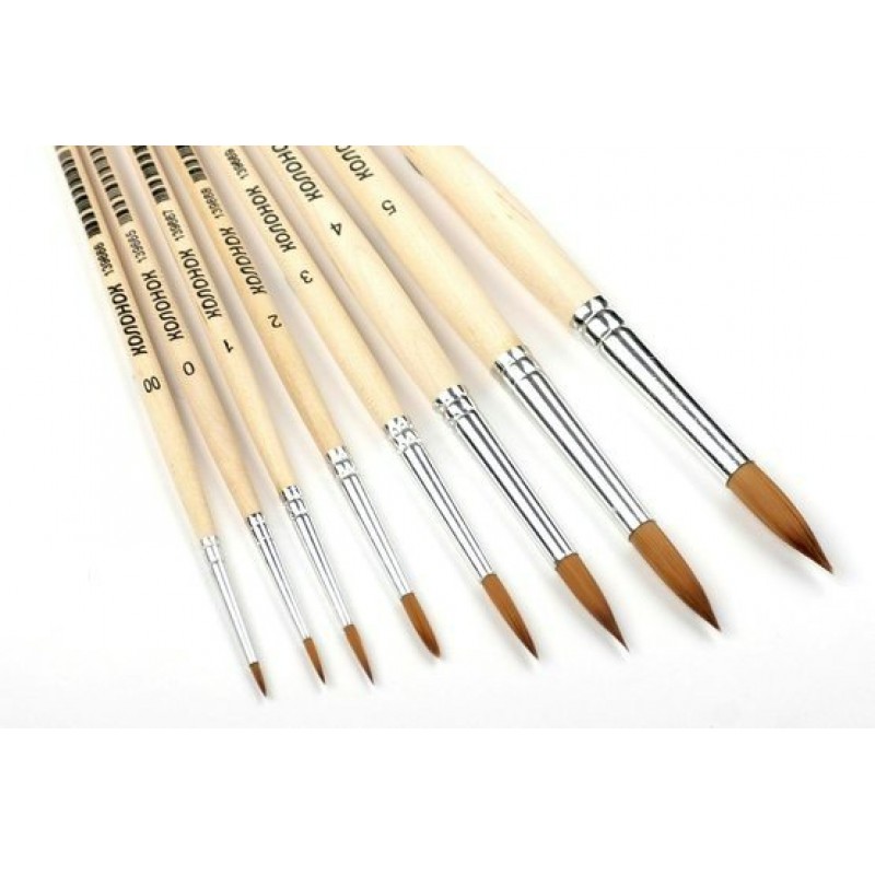 Кисть колонок №0 (имитация) круглая, короткая ручка Невская палитра