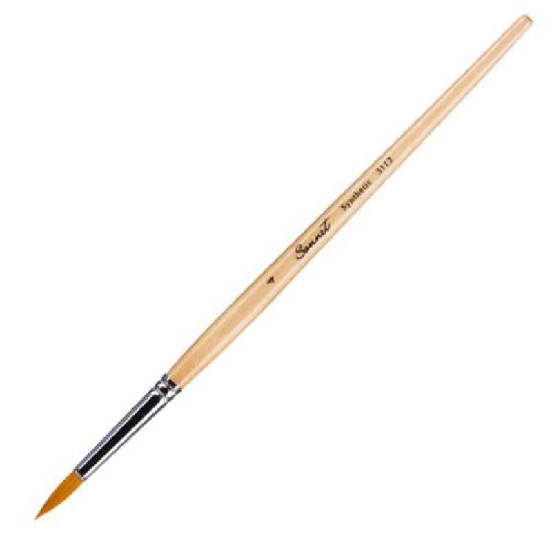 Кисть синтетика №4 (4 мм) Сонет, круглая, короткая ручка Невская палитра