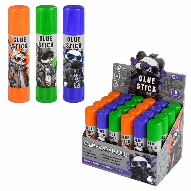 Клей карандаш КРУТЫЕ ЗВЕРЯТА, PVP основа Феникс