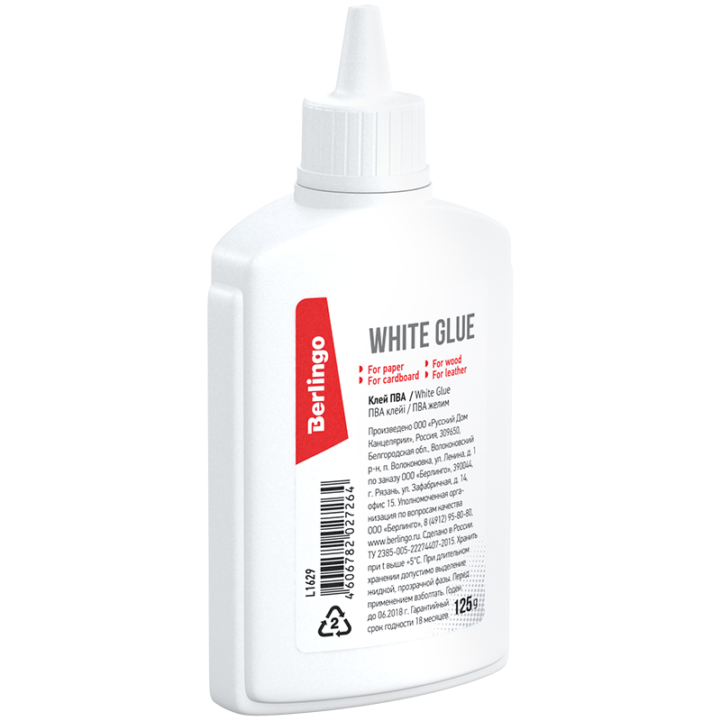 Клей ПВА 125гр для склеивания бумаги, картона, дерева, стекла, кожи, ткани. Berlingo