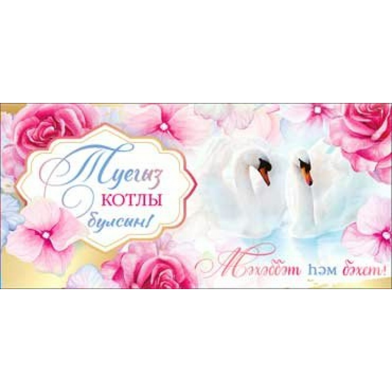 Конверт для денег "С Днем свадьбы!" (На татарском языке) 82х171 мм