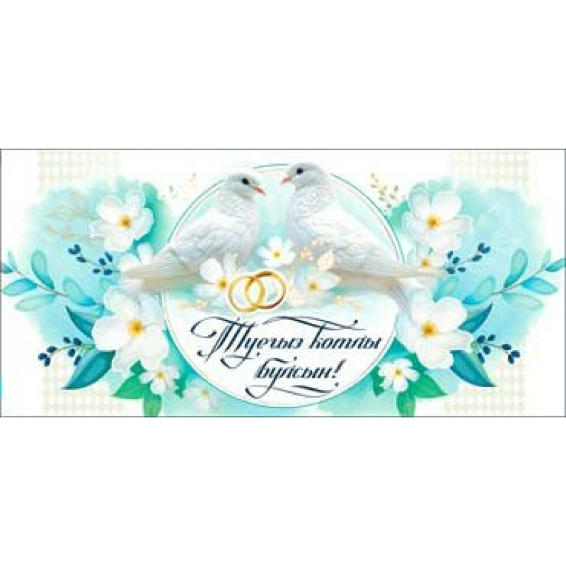 Конверт для денег "С Днем Свадьбы!" (На татарском языке) 82х171 мм