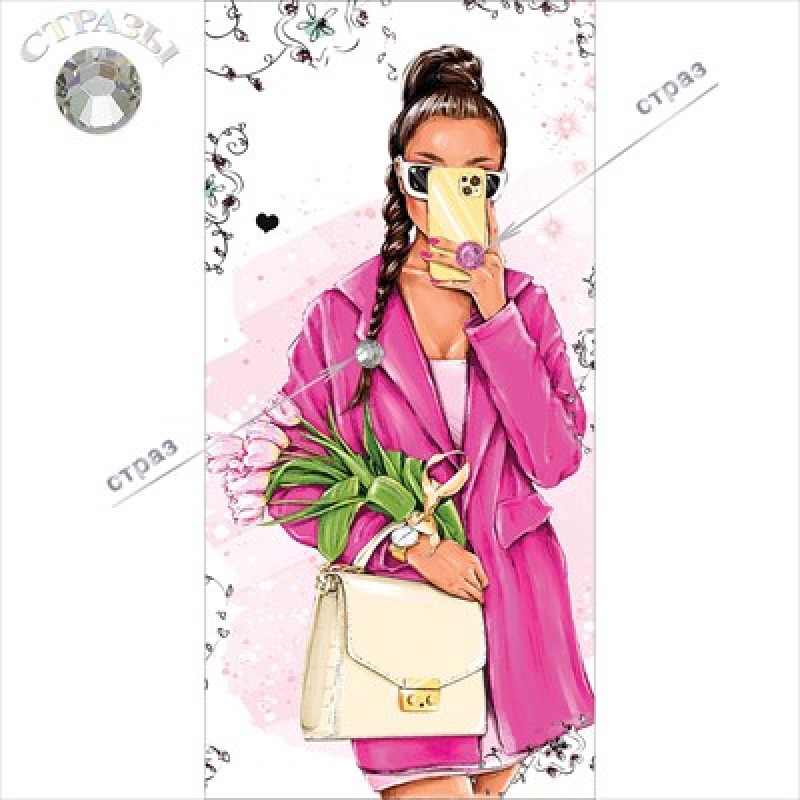 Конверт для денег без надписи (девушка с тюльпанами) 84х168 мм