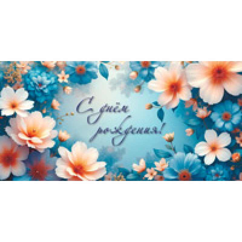 Конверт для денег С днем рождения! (женский, цветы) 82х170 мм