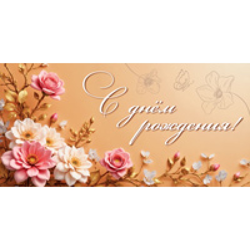 Конверт для денег С днём рождения! (женский, цветы) 82х170 мм