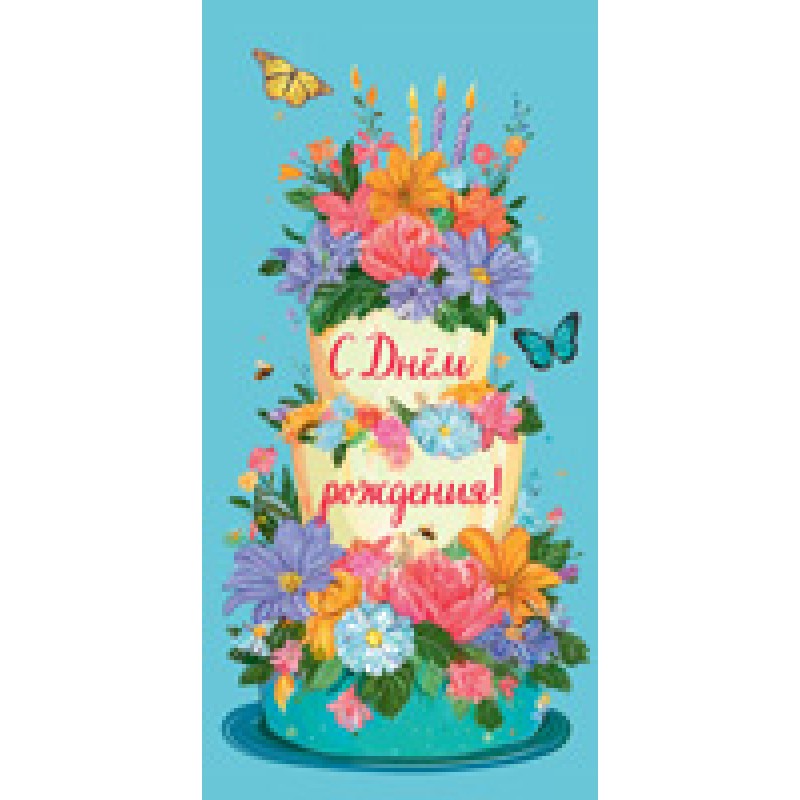 Конверт для денег С Днём рождения! (женский, цветы) 82х170 мм