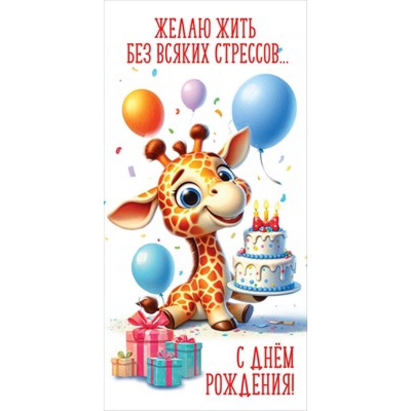 Конверт для денег "Желаю жить без всяких стрессов... С Днём рождения!" 84х168 мм