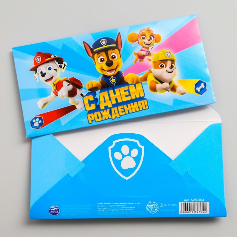 Конверт для денег С днем рождения "Щенячий патруль" 80х165 мм