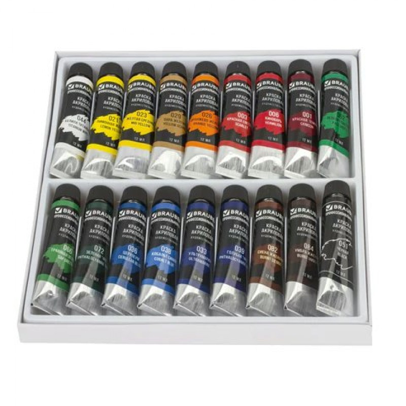 Краски акриловые 18 цв. художественные ,по 12мл,Профессиональная серия. Brauberg
