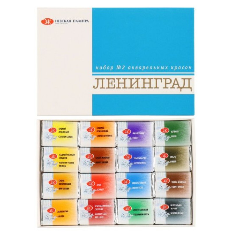 Краски акварель 16цв художественные "Ленинград-2" 2,5 мл, кювет, Невская палитра