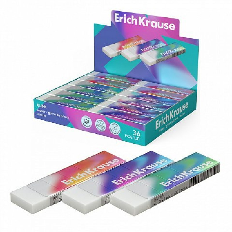 Ластик прямоугольный "Blink" 66*18*6мм, белый, ECO-PVC, Erich Krause
