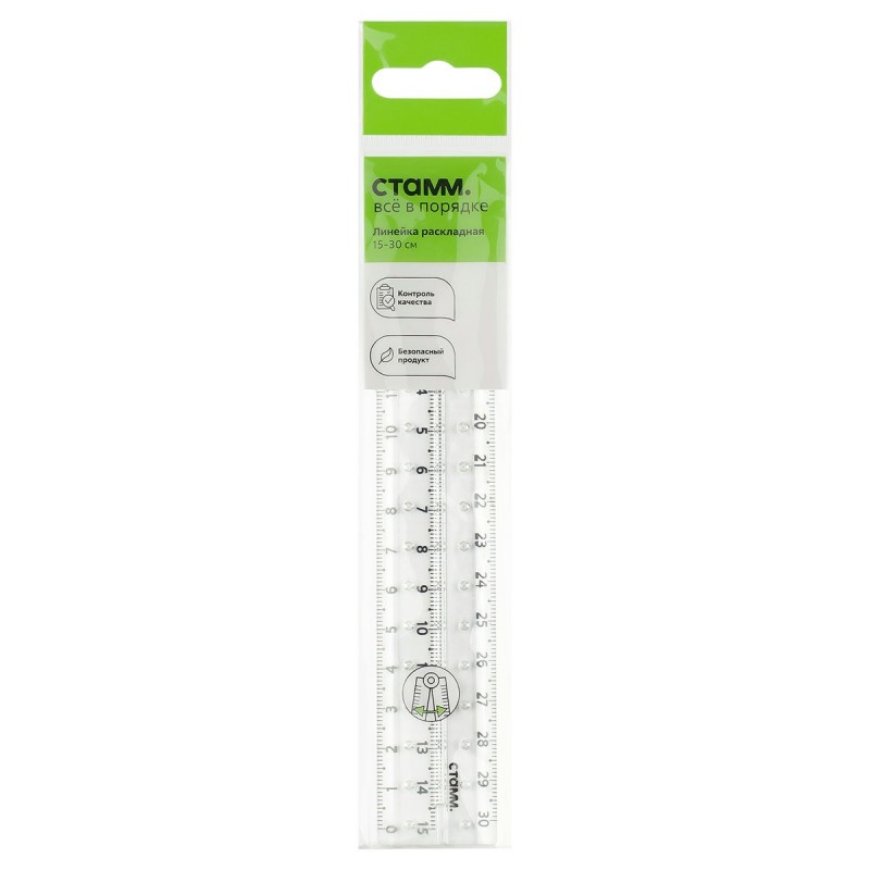 Линейка 15см пластик раскладная до 30см.прозрачная, европодвес Стамм