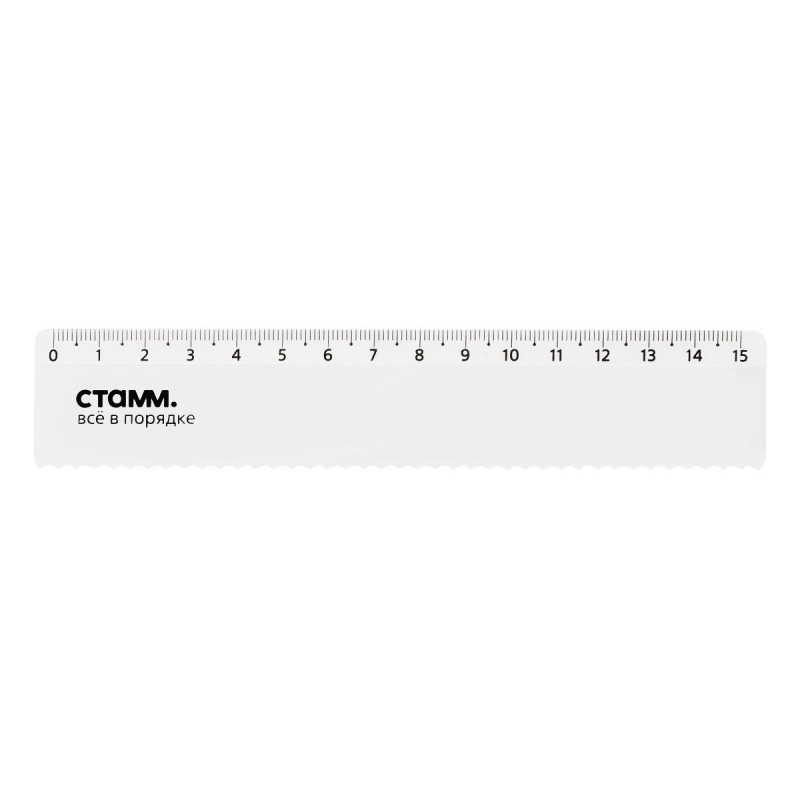 Линейка 15см пластик с волнистым краем, прозрачная, бесцветная, Стамм