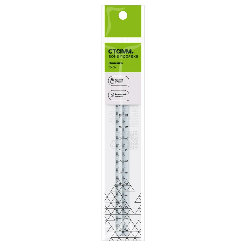 Линейка 15см пластик трехгранная, прозрачная, бесцветная, европодвес Стамм