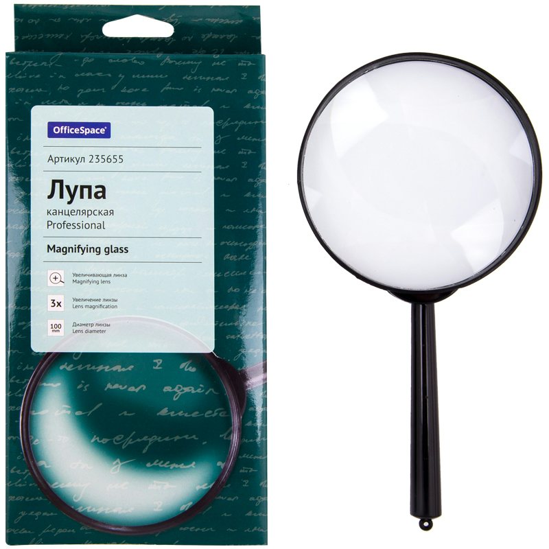 Лупа d-100мм 3-х кратное увеличение, карт. коробка, европодвес OfficeSpace