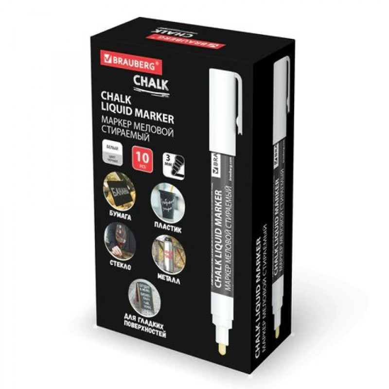 Маркер меловой белый CHALK LIQUID MARKER, 3мм, стираемый, "CHALK" Brauberg