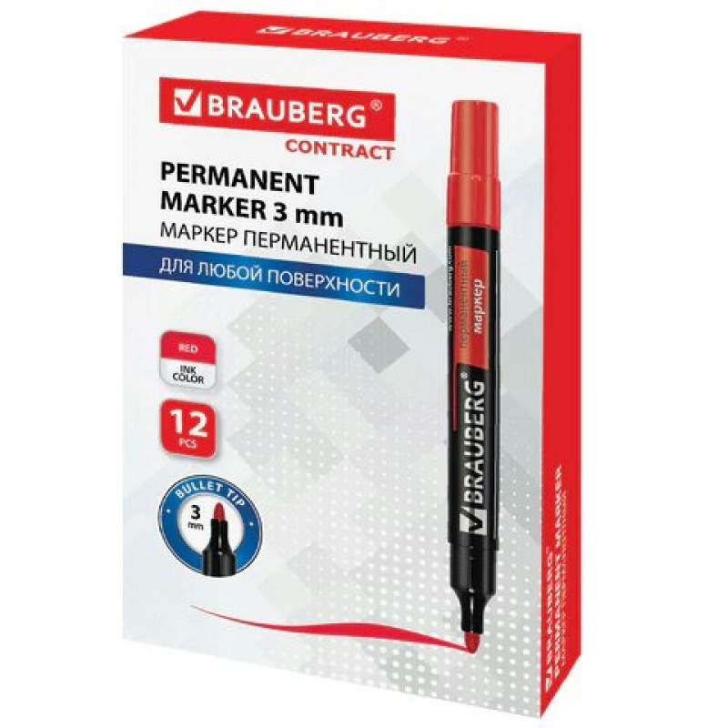 Маркер перманентный красный "Contract", круглый наконечник 3мм, Brauberg
