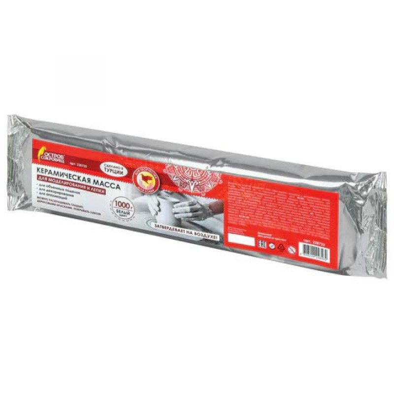 Масса для моделирования и лепки белая керамическая , самозатвердевающая, 1000 г, белая, ОСТРОВ СОКРОВИЩ
