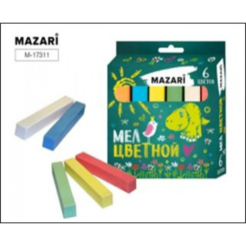 Мел цветной 6цв картонная коробка с европодвесом Mazari