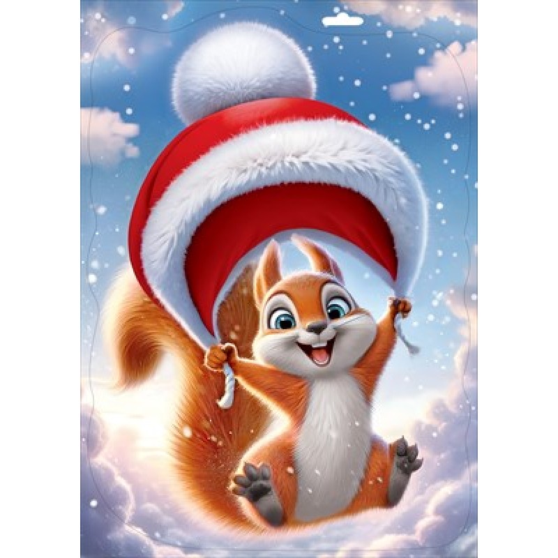 Наклейка "Белочка с новогодней шапочкой" 332х237 мм