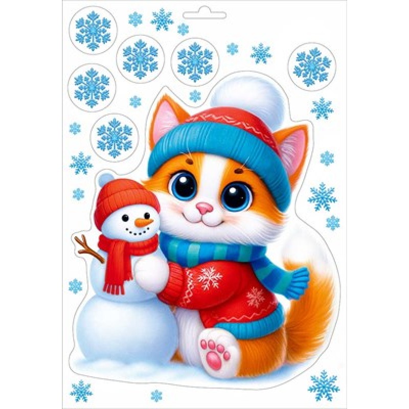 Наклейка "Котёнок и снеговичок" 332х232 мм