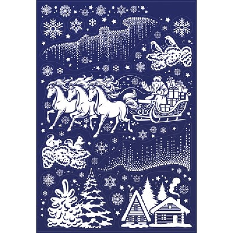 Наклейка "Новогодняя тройка с Дедом Морозом" 485х332 мм