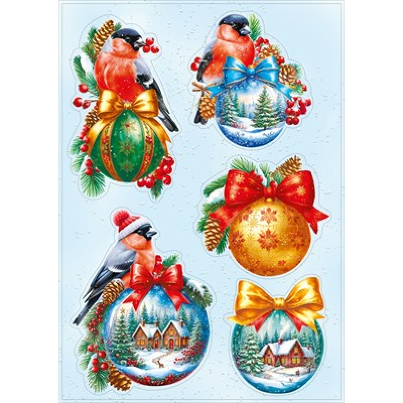 Наклейка "Снегири и шарики" 330х233 мм