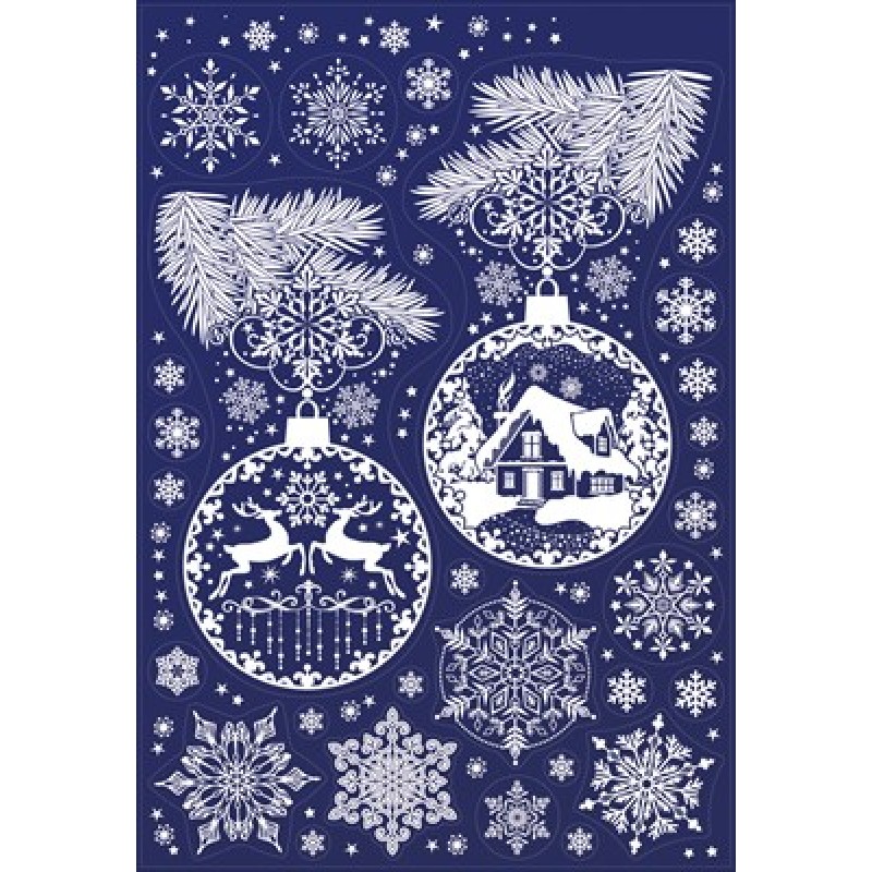 Наклейка "Снежинки и новогодние игрушки" 485х332 мм