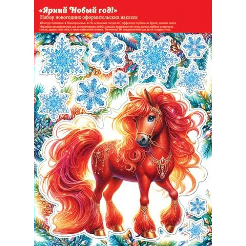 Наклейка "Яркий Новый год!" (год Лошади) 244х338 мм