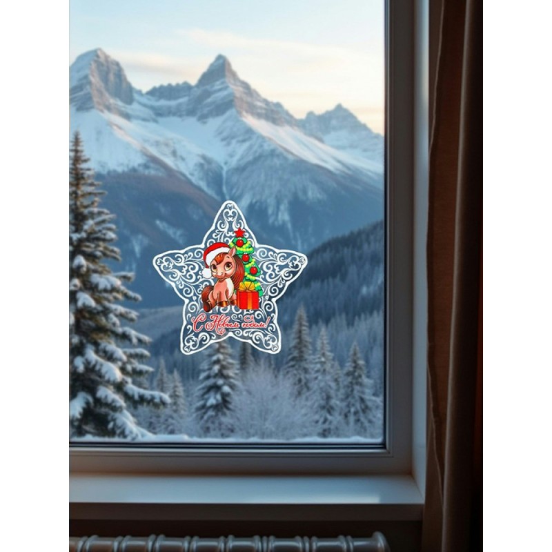 Наклейка "Лошадка у ёлочки" 20х20 см