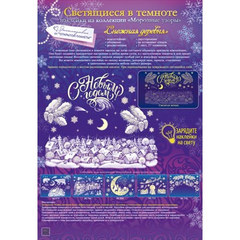 Наклейка светящиеся в темноте "С Новым Годом!" 485х332 мм