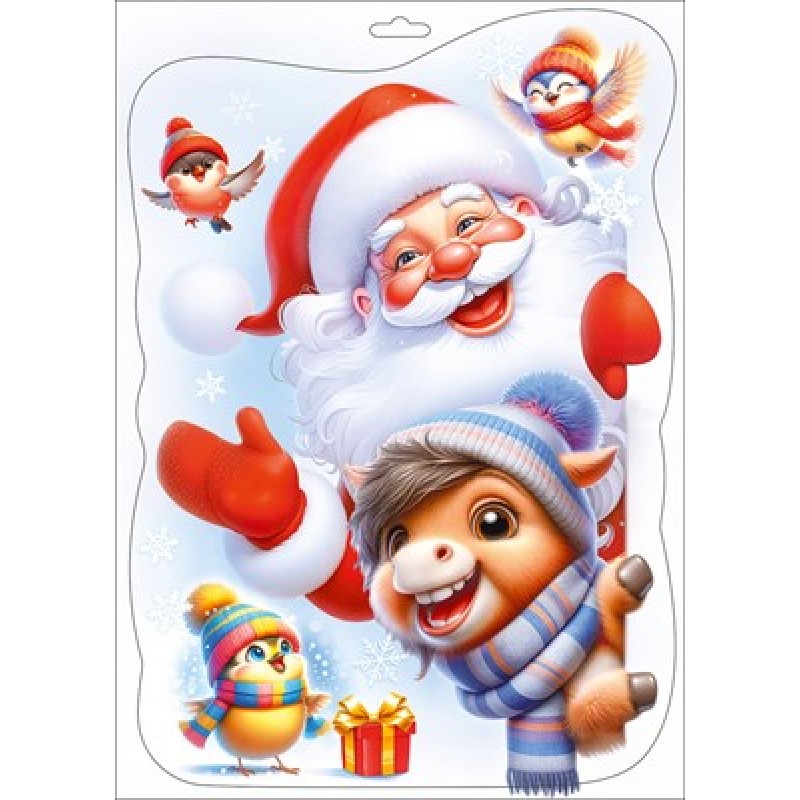 Наклейка Двусторонняя "Дед Мороз и пони"