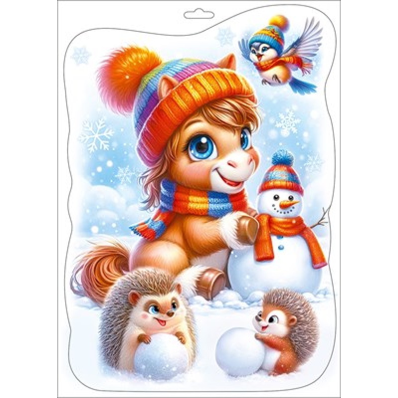 Наклейка Двусторонняя "Пони и ёжики со снеговиком" 332х237 мм