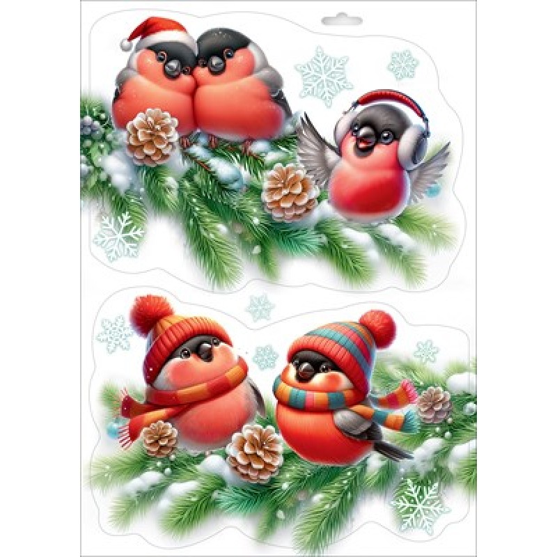 Наклейка Двусторонняя "Снегири в шапочках" 332х237 мм