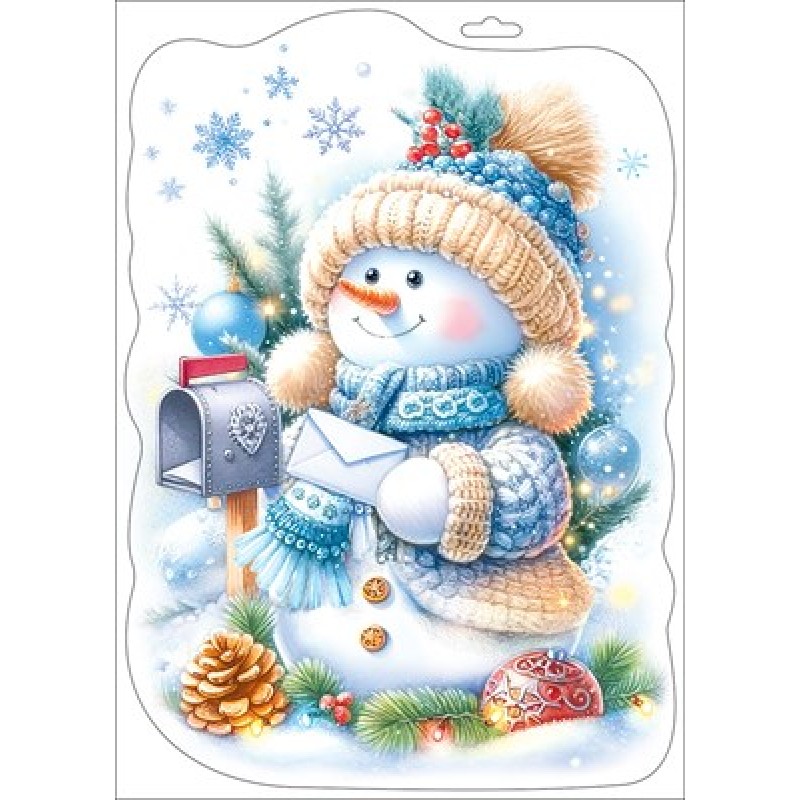 Наклейка Двусторонняя "Снеговик с письмом" 332х237 мм
