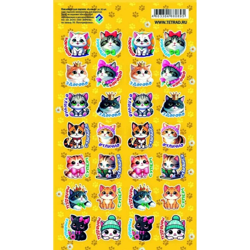 Наклейка Оценки Котики 110х170 мм