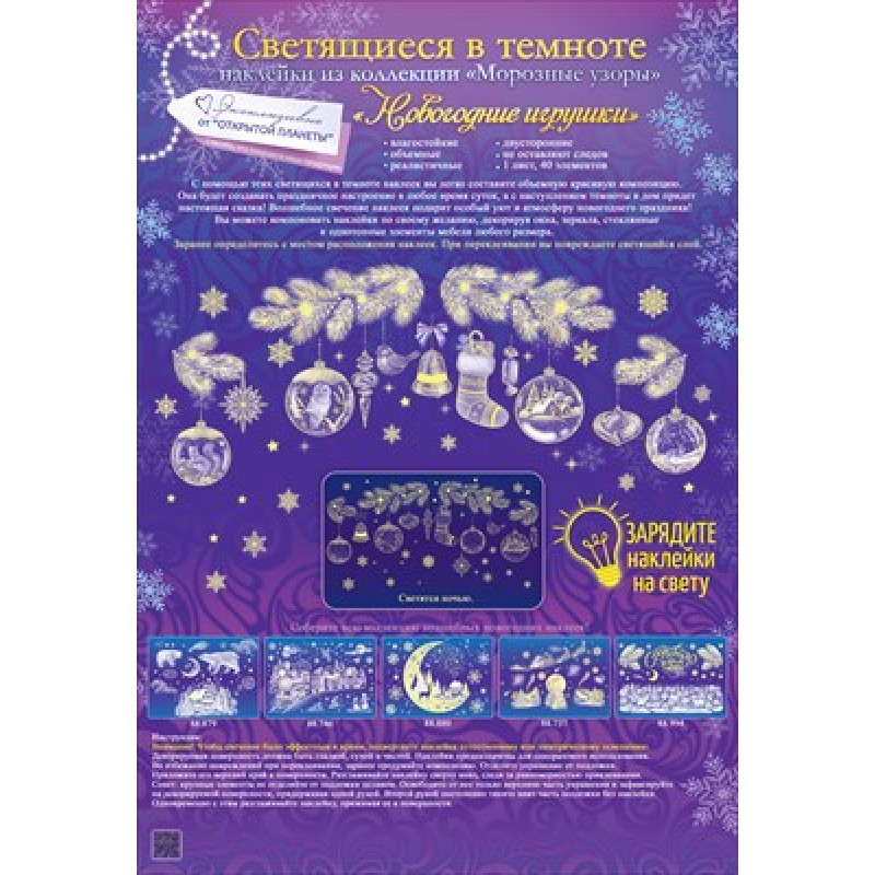 Наклейка Светящиеся в темноте "Новогодние игрушки" 332х485 мм