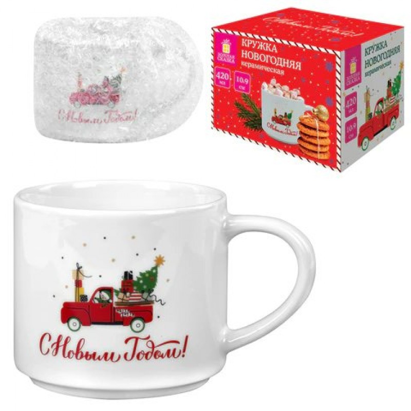Новый год Кружка 420 мл "Машинка",10х9 см, каменная керамика, Золотая сказка