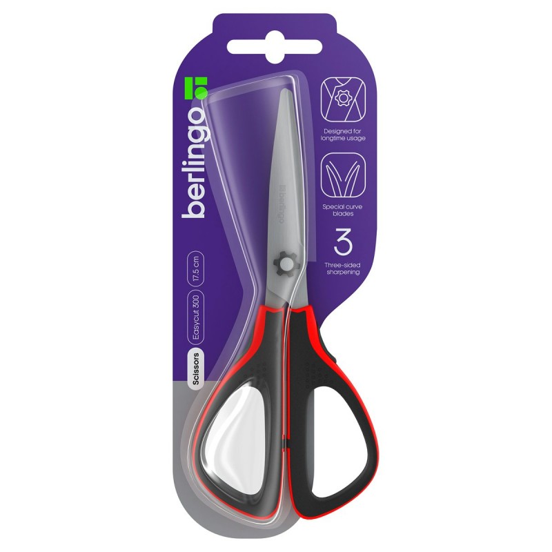 Ножницы офисные 175мм "Easycut 300", красные, мягкие вставки, европодвес Berlingo