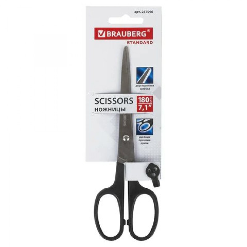 Ножницы офисные 180мм "Standard" , классической формы, черные, Brauberg