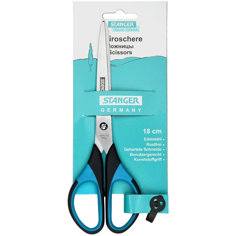 Ножницы офисные 180мм эргономичн.черно-бирюзовые, ручки пластиковые с резиновыми вставками STANGER