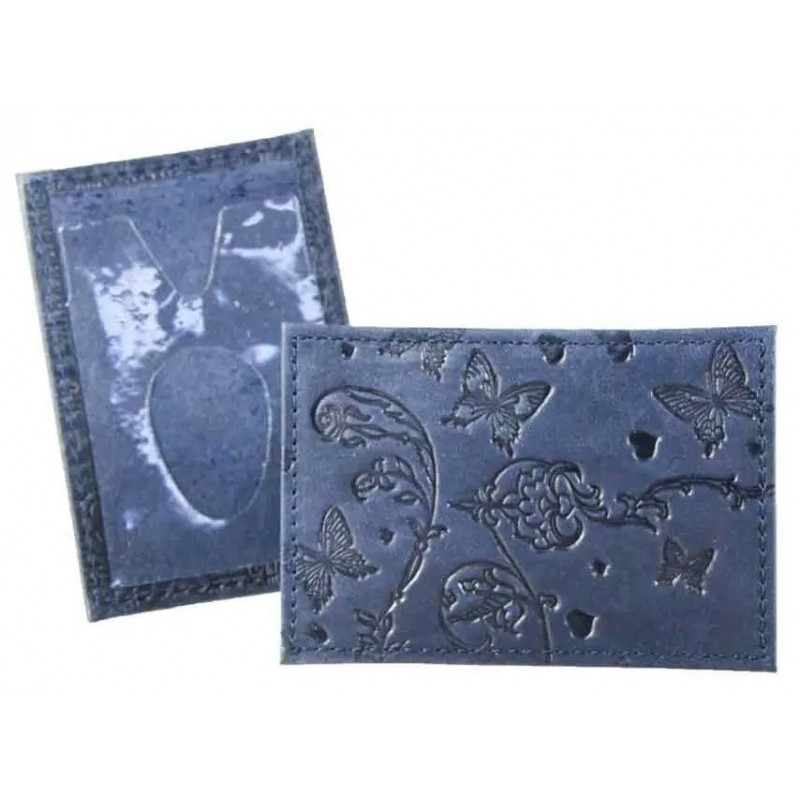 Обложка для проездных документов нат.кожа синий, сплошное тиснение по коже "Вдохновение" Имидж