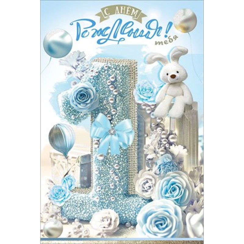 Открытка "С Днём рождения! Тебя. 1 годик" 122х182 мм