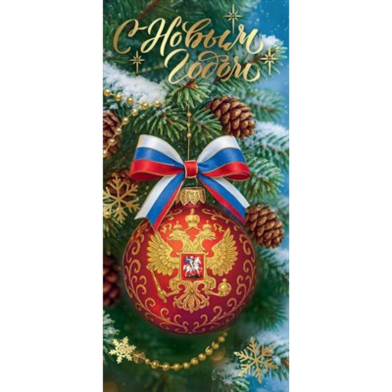 Открытка "С Новым годом" (госсимволика) (евро без текста) 97х204 мм
