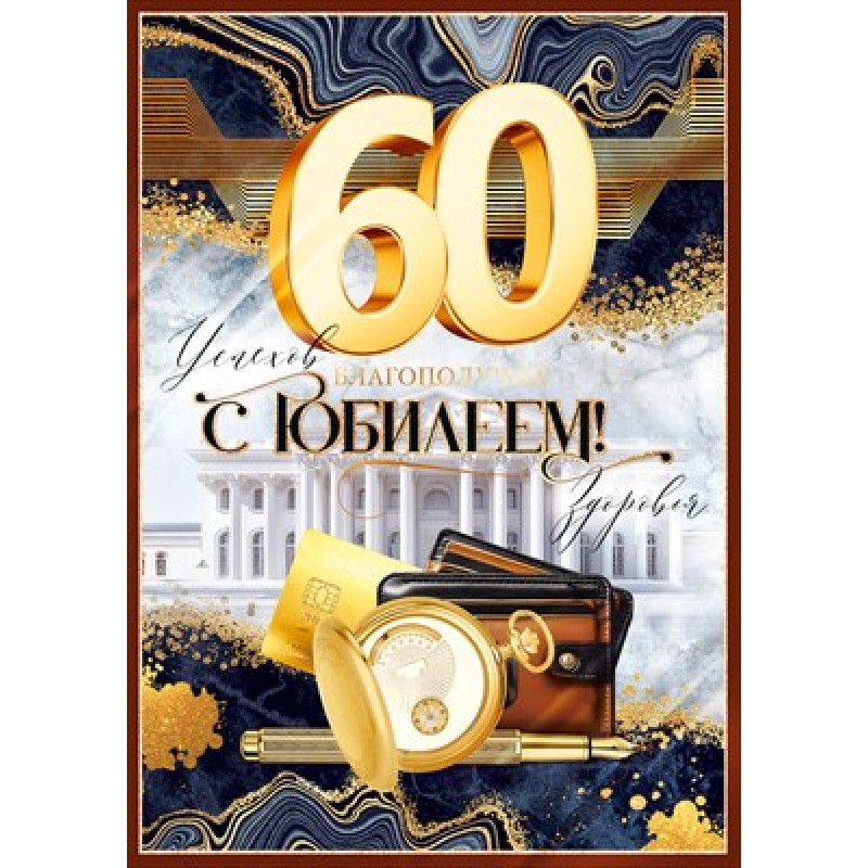 Открытка "С Юбилеем! 60 лет" (с карманом) 196х277 мм