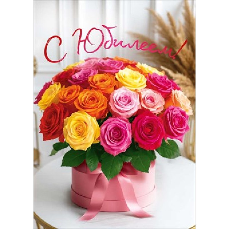 Открытка "С юбилеем!" (букет роз в круглой коробке) 196х277 мм