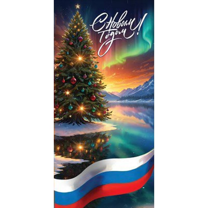 Открытка "С Новым годом!" госсимволика (евро без текста) 204х97мм