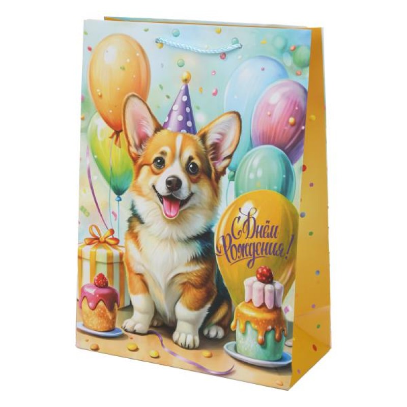Пакет Бумажный корги с днем рождения 220х310х100 мм