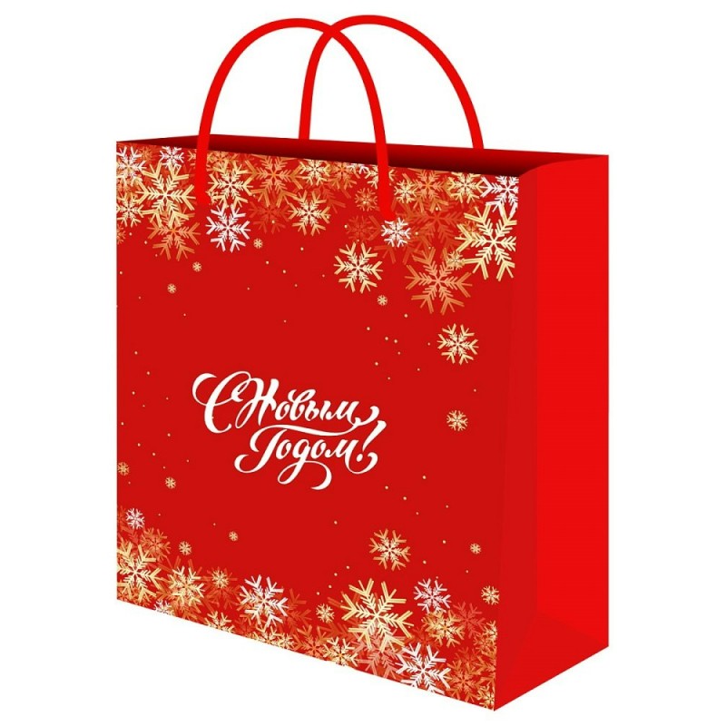 Пакет Бумажный Красный новогодний НГ 26,4х32,7х8 см (L)